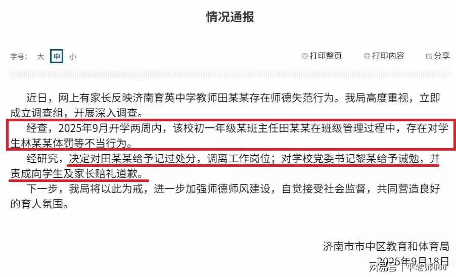 付女士举报济南育英中学班主任田老师涉嫌体罚学生引关注,教体局对涉事老师做出停职处理、记过处分速盈策略,付女士对处理结果不满意引发网友热议。