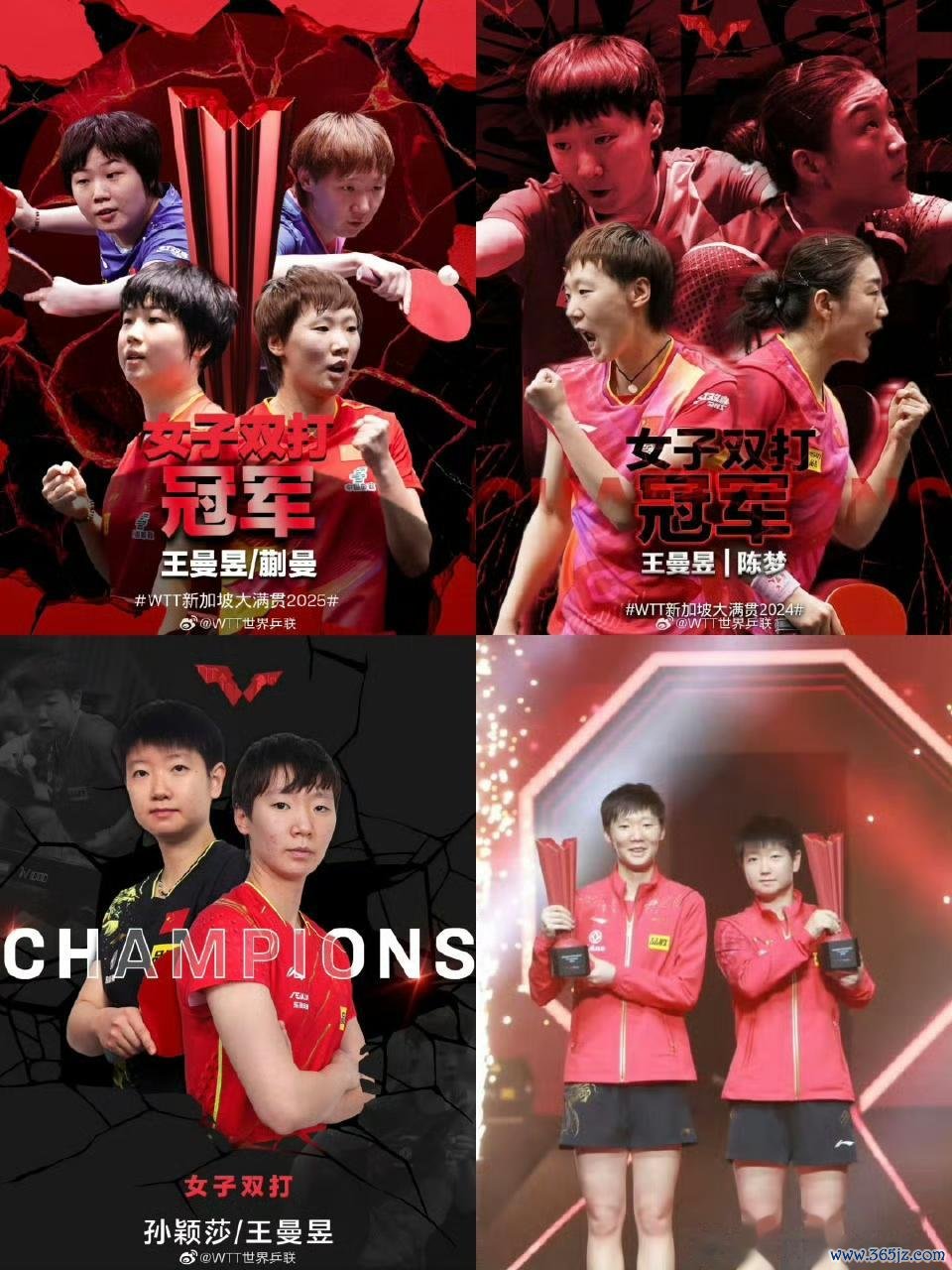 自2022年起至今,五届WTT新加坡大满贯比赛女双冠军获得组合: