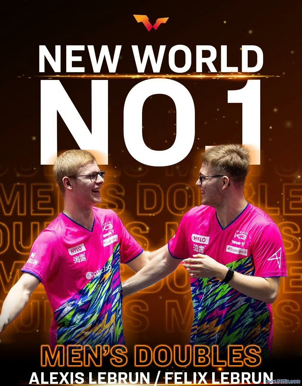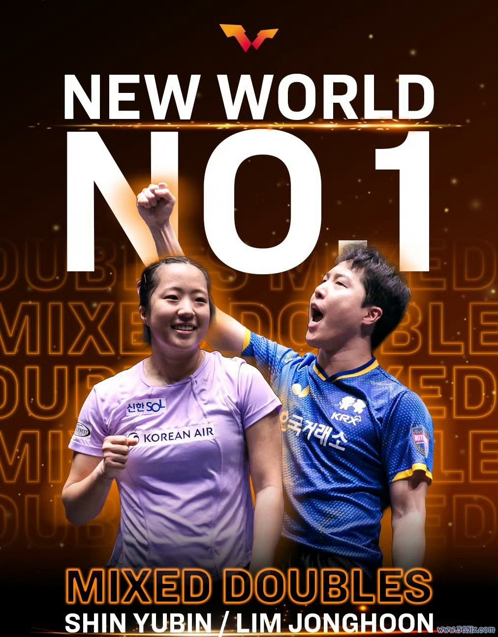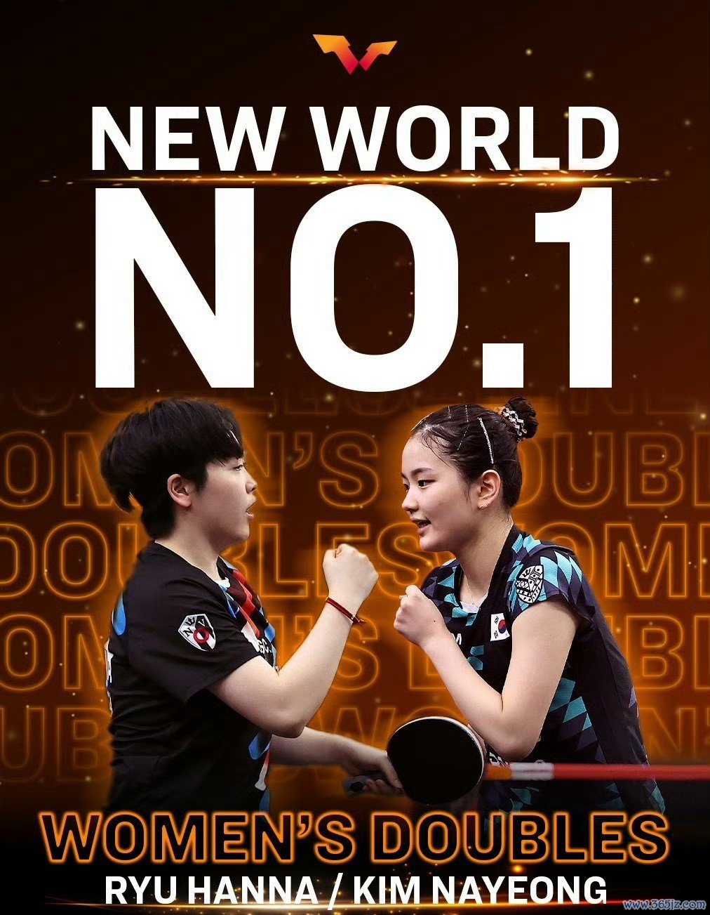 国际乒联公布最新世界排名中,除了混双世界第一为韩国组合申裕斌/林钟勋,两组外协会双打组合也晋升为世界排名第一组合!