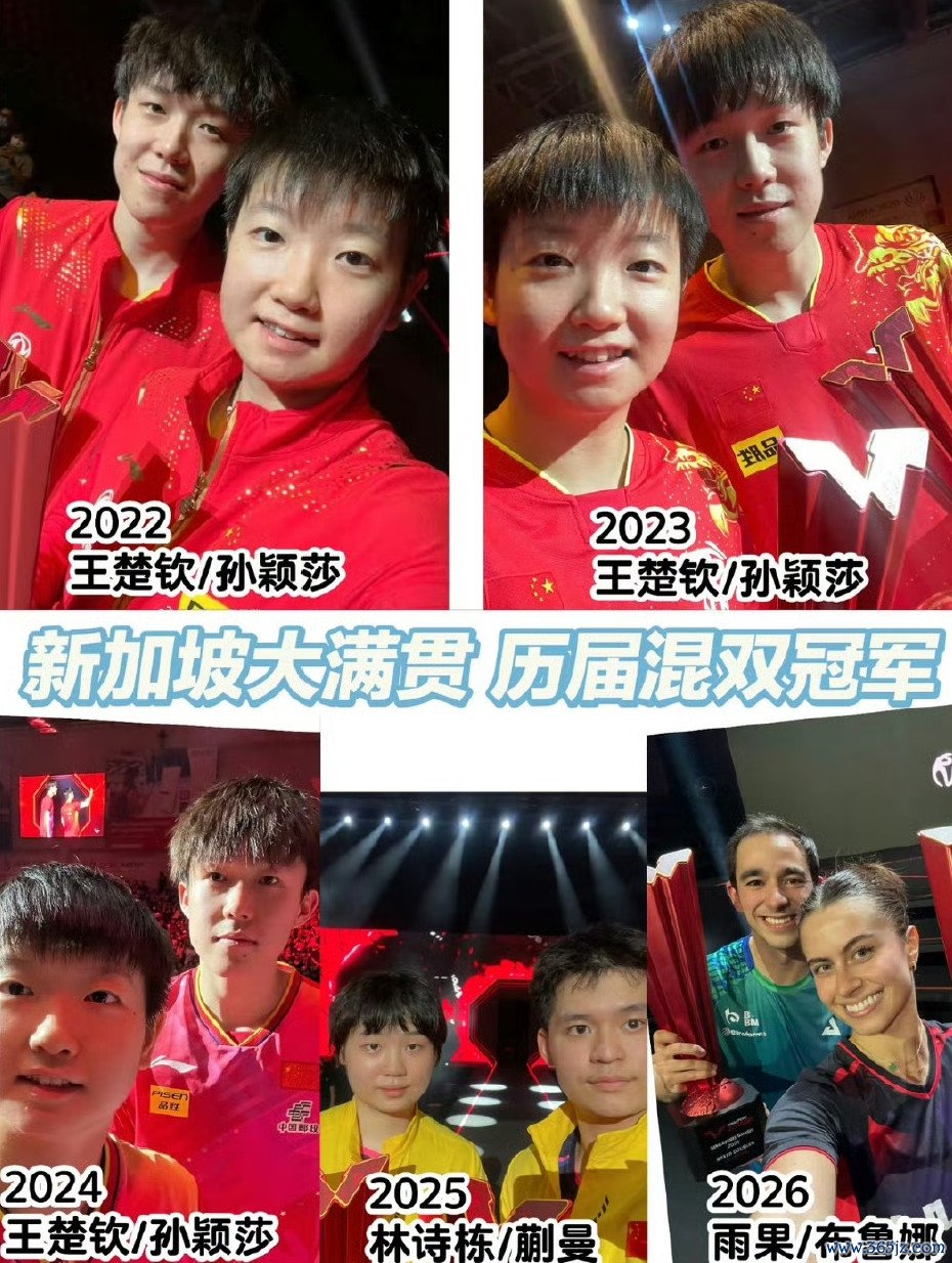 自2022年起至今,五届WTT新加坡大满贯比赛混双冠军获得组合: